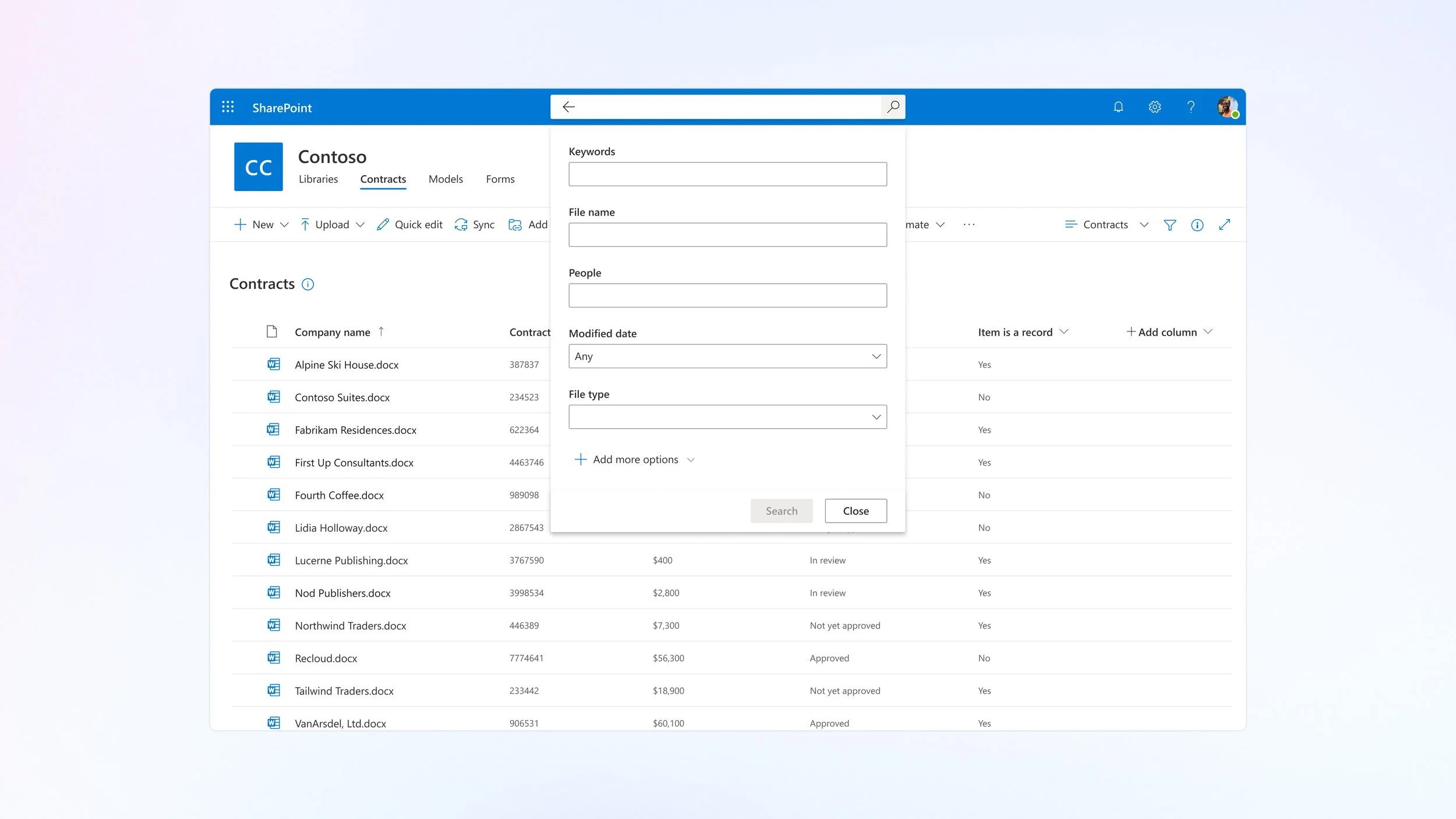 As part of the Microsoft Syntex suite, Advanced Search offers a premium, intelligent way to locate specific documents within a library by leveraging extracted metadata. Designed to dramatically reduce the time spent searching, it moves beyond SharePoint’s traditional keyword-based search by enabling users to find content based on precise, structured data.